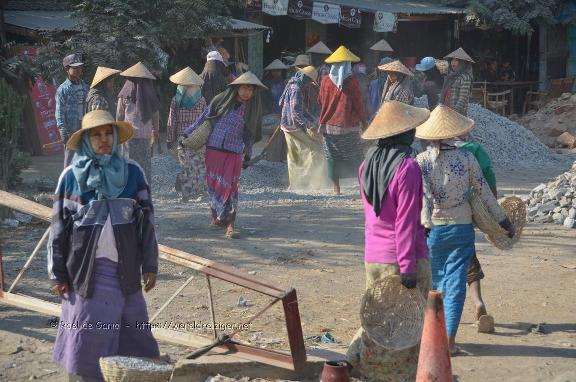 Myanmar - Pindaya: Wegenbouw