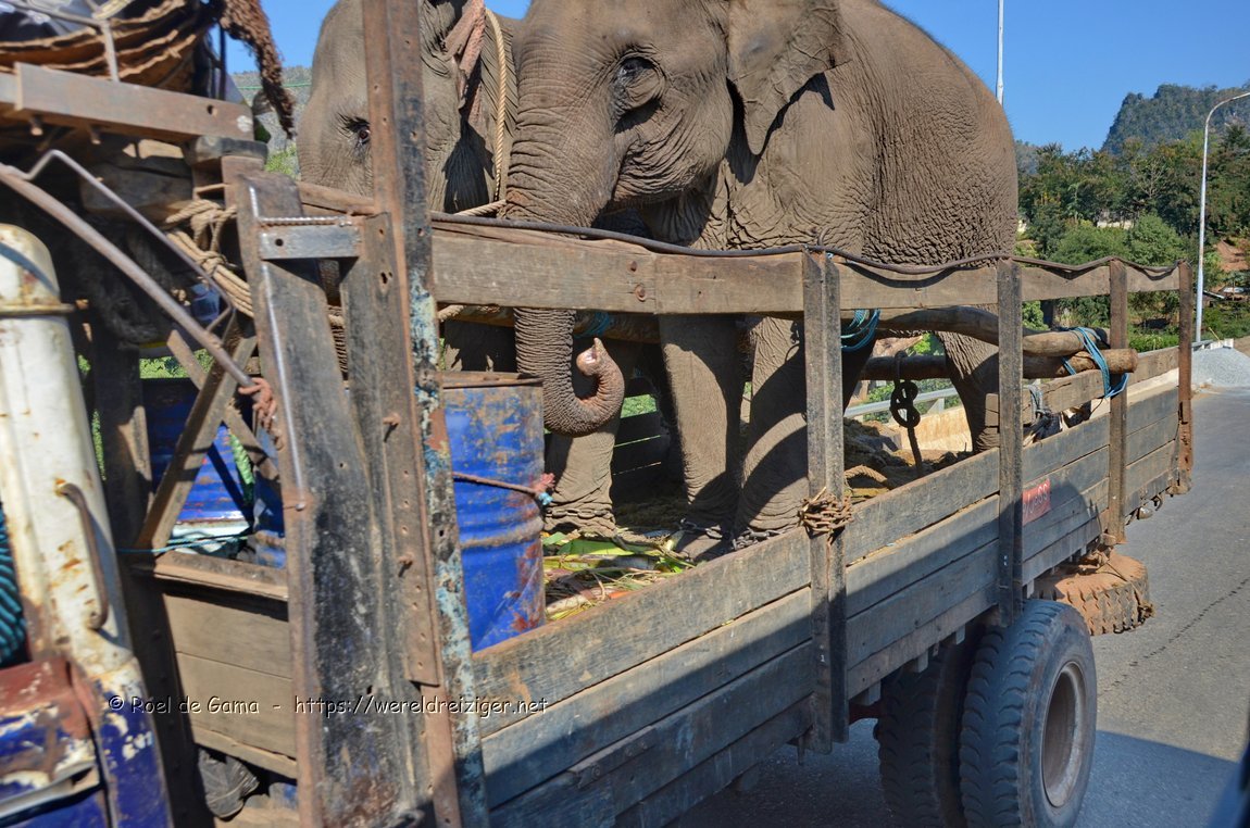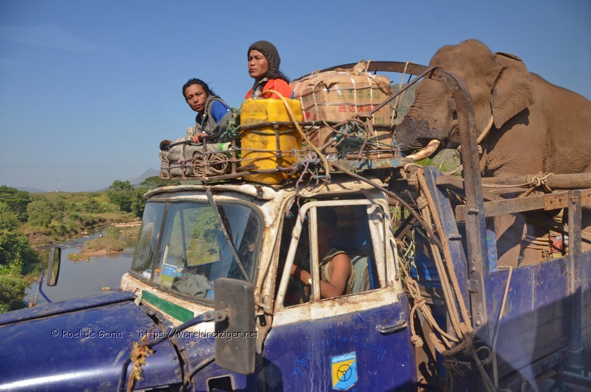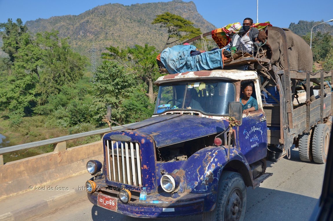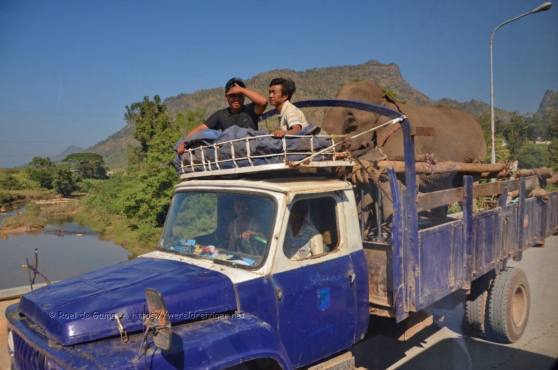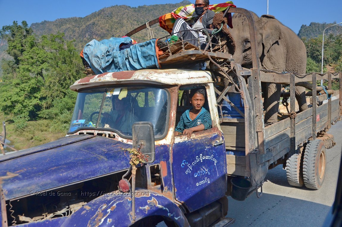 Myanmar - Pindaya: Olifantvervoer